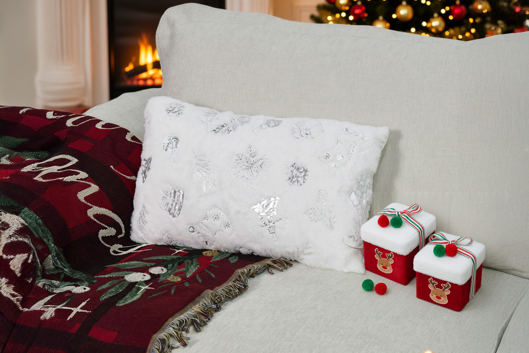 Cozy Christmas Silver Charm Lumbar Pillow