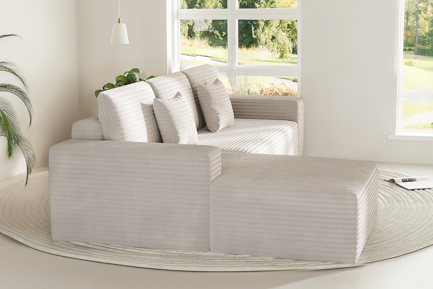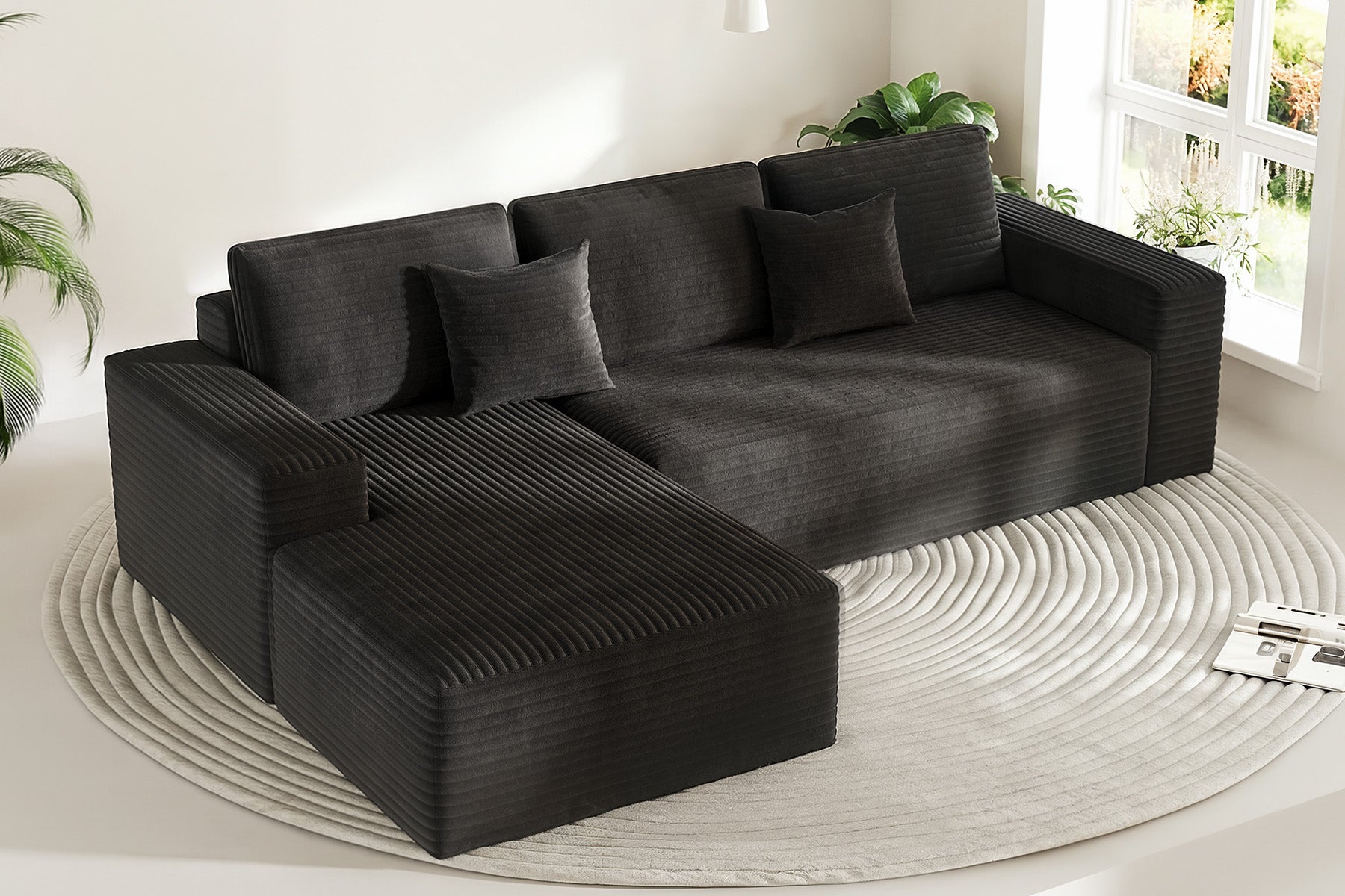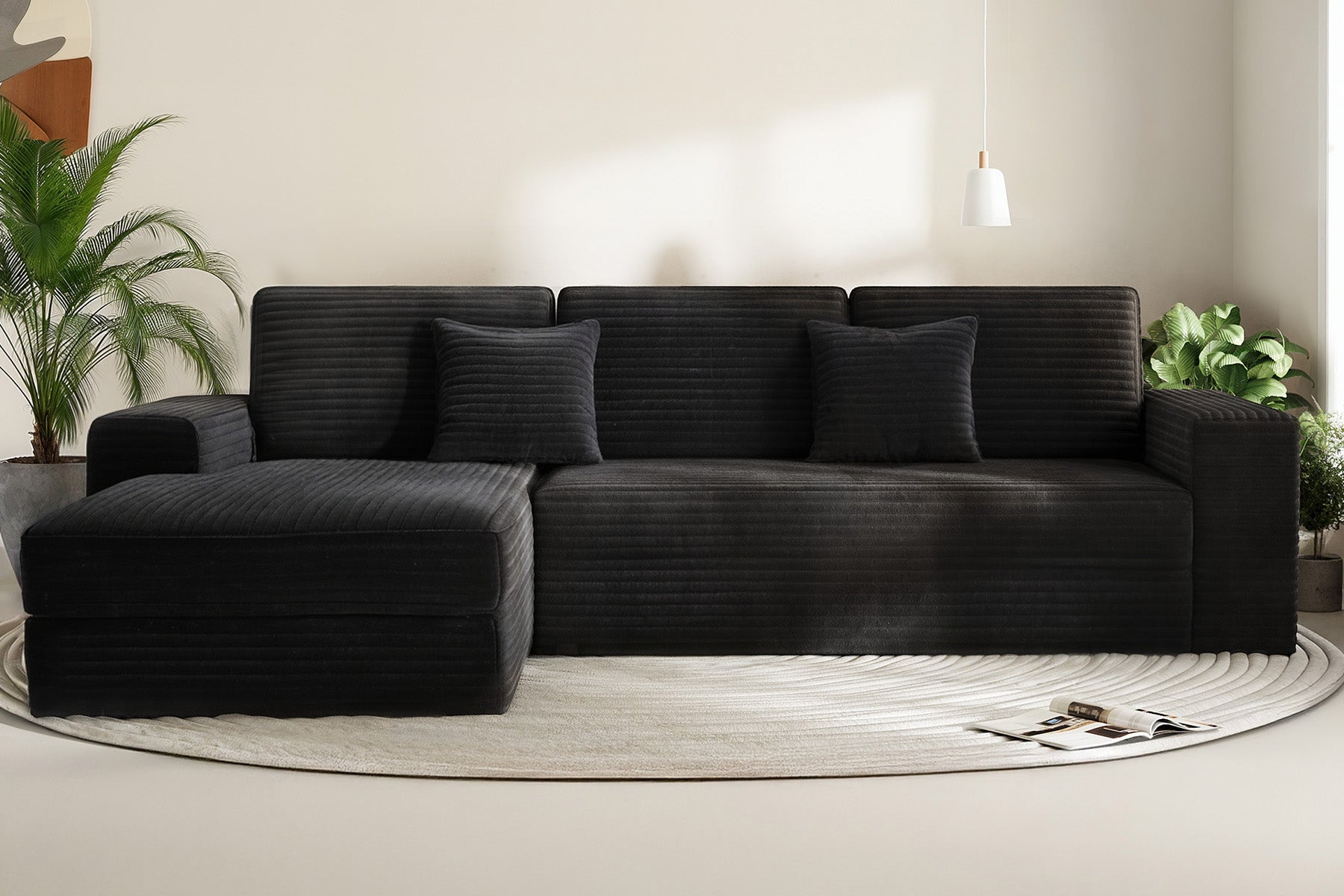 Elevate your space with the Innovar SleepCore Sofa: plush white or black corduroy, mattress-grade core for decade-long resilience. Modular design transforms from luxe sofa to seamless sofa-bed—daytime elegance, nighttime comfort.